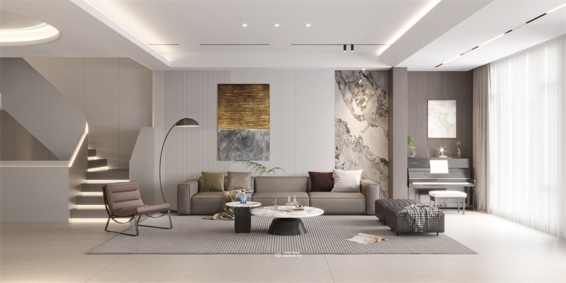滇池one 現(xiàn)代輕奢風(fēng)格 一樓客廳