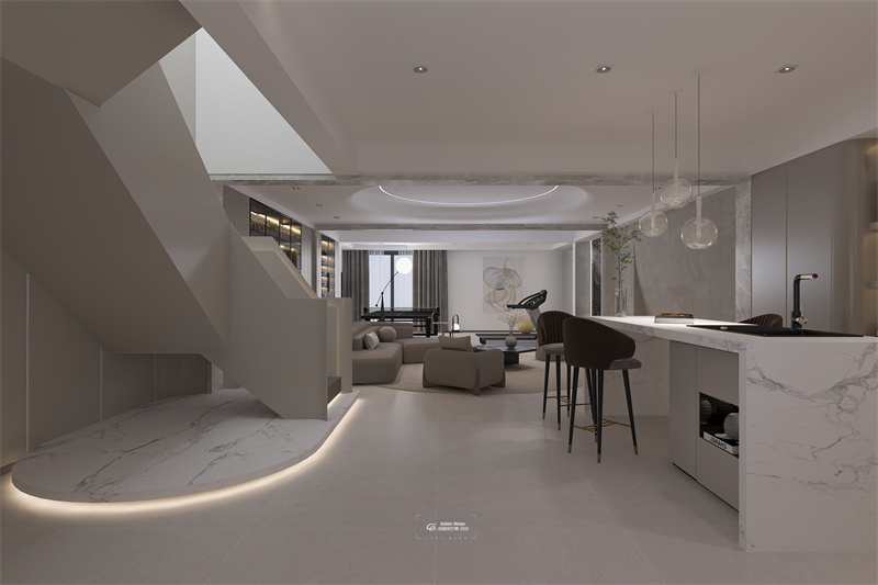 滇池one 現(xiàn)代輕奢風(fēng)格 負(fù)一樓樓梯間