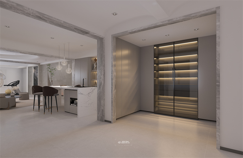 滇池one 現(xiàn)代輕奢風(fēng)格 負(fù)二樓玄關(guān)區(qū)