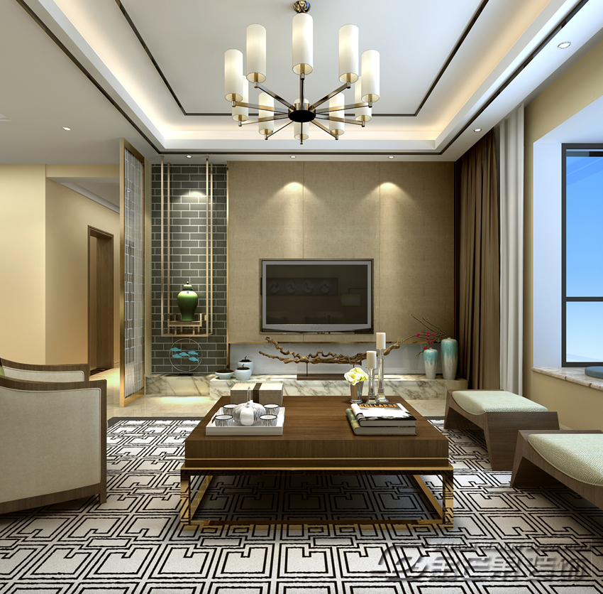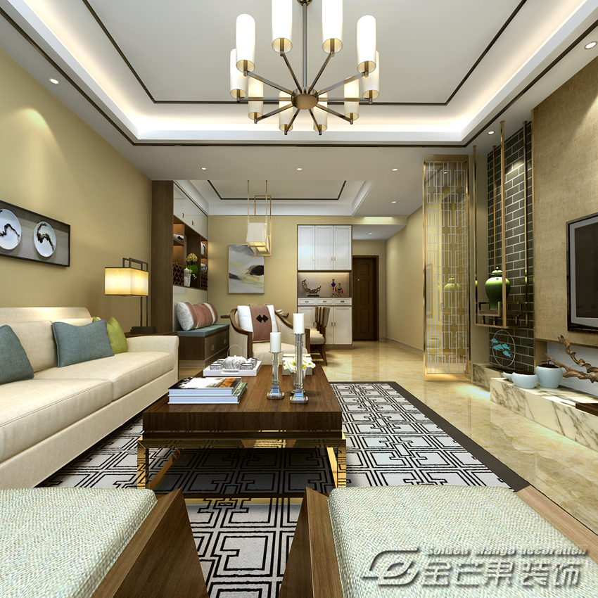 惠景園135㎡ 簡中風格 客廳效果圖 金芒果裝飾設計師 出品