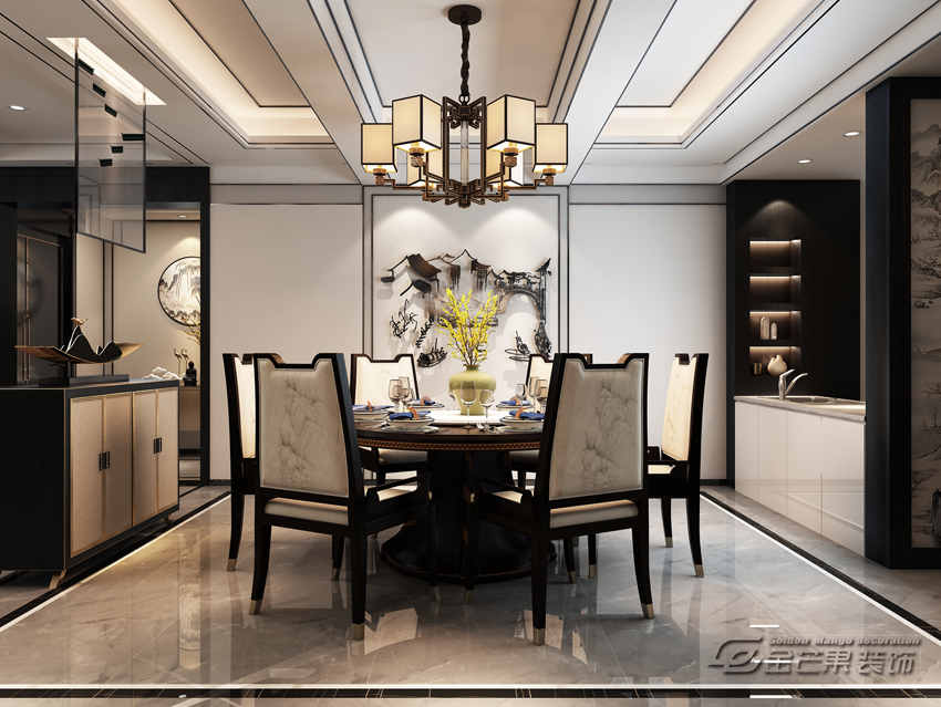 昆明湖瀾庭230㎡ 新中式風格 餐廳效果圖 金芒果裝飾設計師:李葉飛 出品