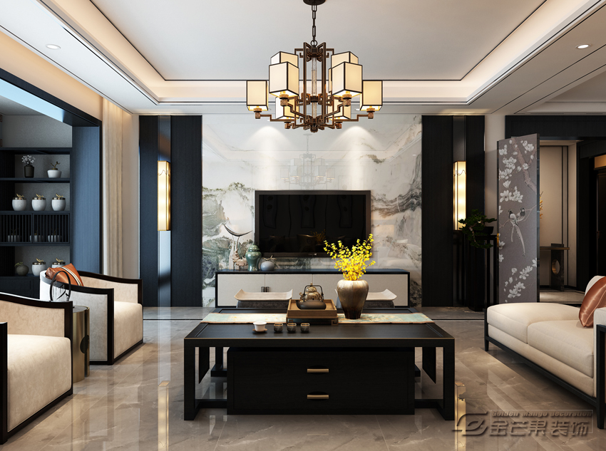 昆明湖瀾庭230㎡ 新中式風格 客廳效果圖 金芒果裝飾設計師:李葉飛 出品