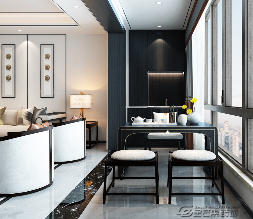昆明湖瀾庭230㎡ 新中式風格 陽臺效果圖 金芒果裝飾設計師:李葉飛 出品