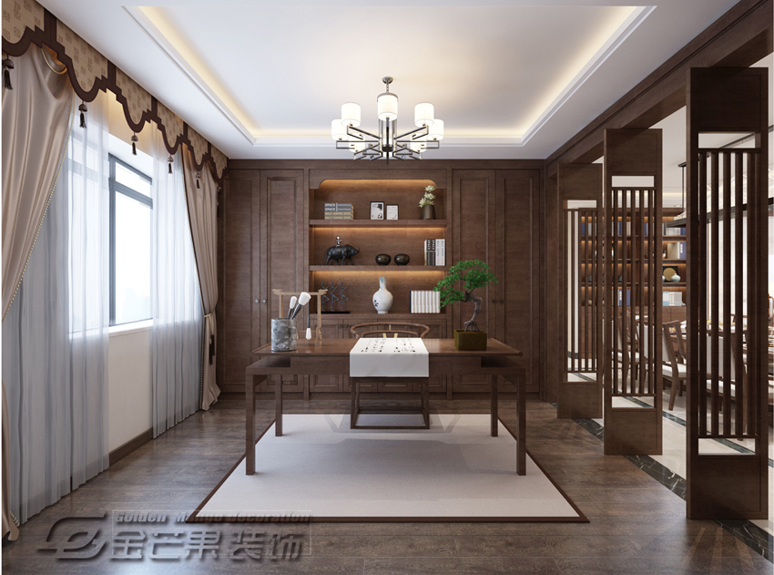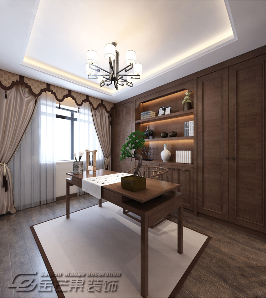 翠湖水晶公寓150㎡ 新中式風(fēng)格 書房效果圖 金芒果裝飾設(shè)計(jì)師:徐祎珅 出品