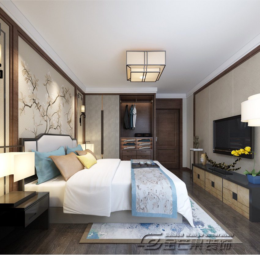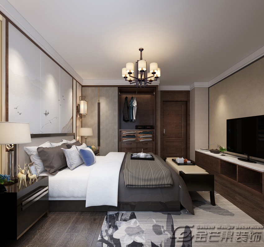 翠湖水晶公寓150㎡ 新中式風(fēng)格 臥室效果圖 金芒果裝飾設(shè)計(jì)師:徐祎珅 出品
