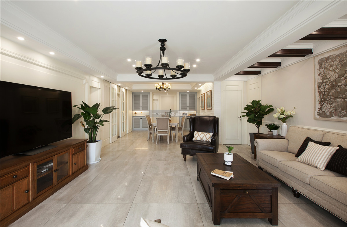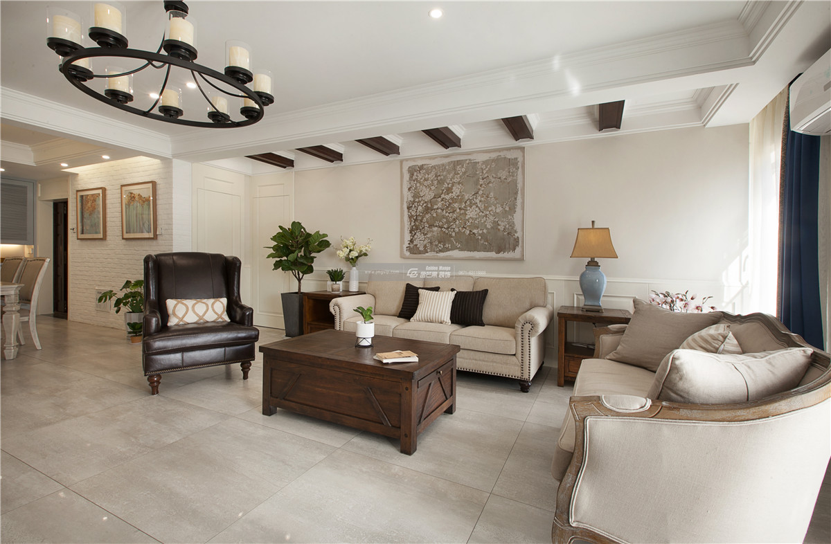 實力玖如堂 148m² 美式風格 客廳實景圖 金芒果裝飾設計師:張永珍 出品