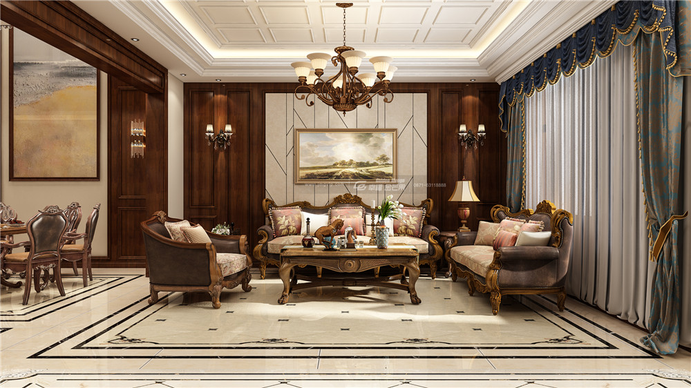 云璽大宅 550㎡ 美式風(fēng)格 玄關(guān)客廳效果圖 幸福金芒果裝飾: 張正川 出品