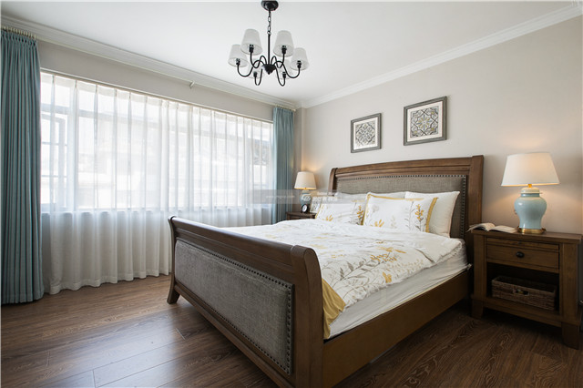 做舊處理的家具也是美式風格打造中常用的手法,個性質樸的同時突出業主的生活品味。木材突出美式的隨性和慵懶,簡雅而復古的氣質讓臥室變得舒適而個性。