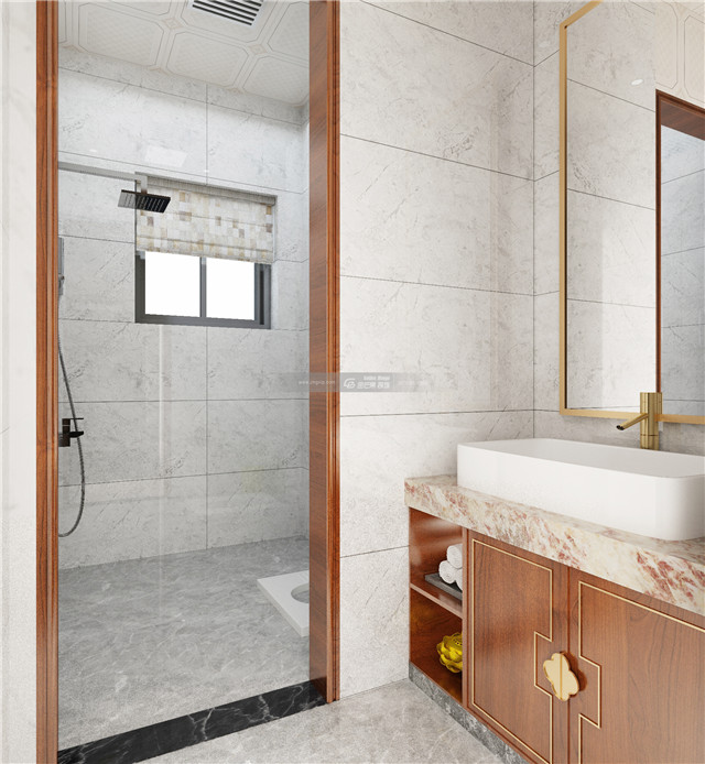 大理石上的金色花紋,融合中式雍容華貴的氣質,讓家韻味更顯。