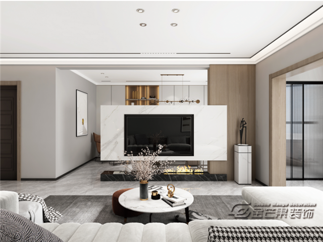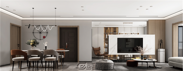 獨(dú)特的電視背景墻造型,增加空間層次感,隔而不斷的設(shè)計(jì)也顯得更加的通透,打造現(xiàn)代居家的時(shí)尚個(gè)性和溫馨感。
