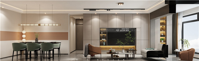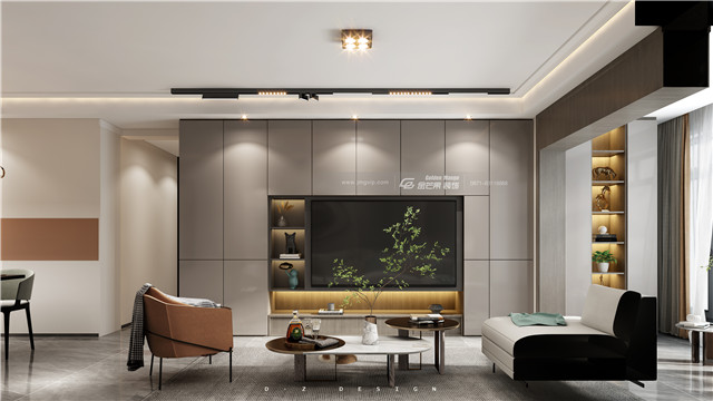 加入木材,增加溫暖氣質(zhì)的感覺。移動軌道燈帶來造型感,電視柜和墻體合二為一,增加功能性的同時(shí)更添時(shí)尚和個(gè)性的感覺。