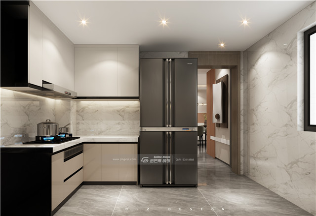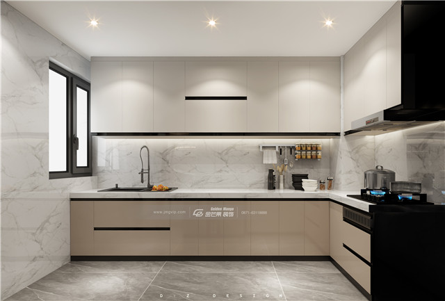 黑色和米白色,大理石,精致的燈飾,營造剛剛好的高級感氛圍,讓烹飪變得更加有格調(diào)感。