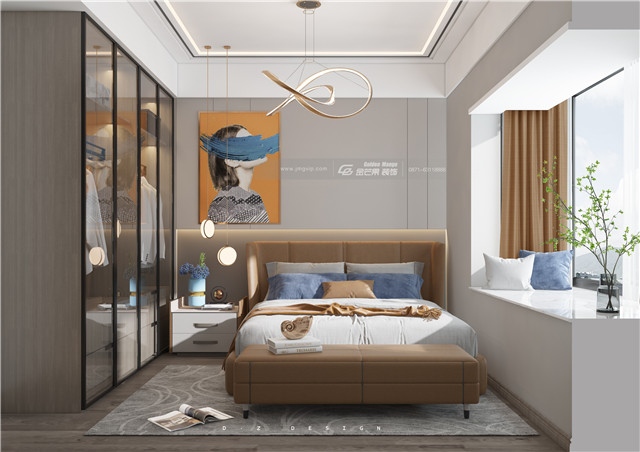 明媚溫暖的顏色,大氣端莊有格調(diào)。玻璃和皮革材質(zhì)的加入,有種時(shí)尚高級感,又展現(xiàn)臥室的溫馨溫暖和舒適感。