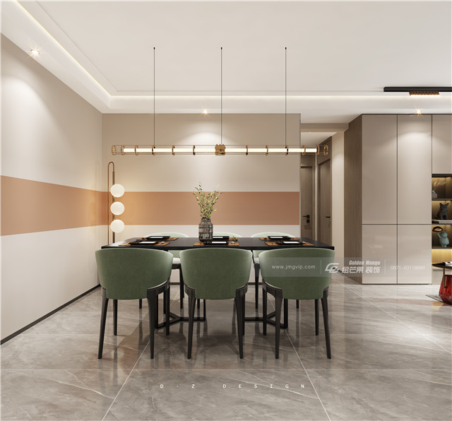 溫暖優(yōu)雅的撞色充滿家居的溫柔時(shí)尚感,簡約的墻面穿插上溫柔的粉色,個(gè)性、格調(diào)立現(xiàn),讓家呈現(xiàn)可鹽可甜的氛圍,優(yōu)雅的綠色餐桌極具時(shí)尚感,和粉色搭配既溫柔又個(gè)性高級,又兼具現(xiàn)代的時(shí)尚家居感。