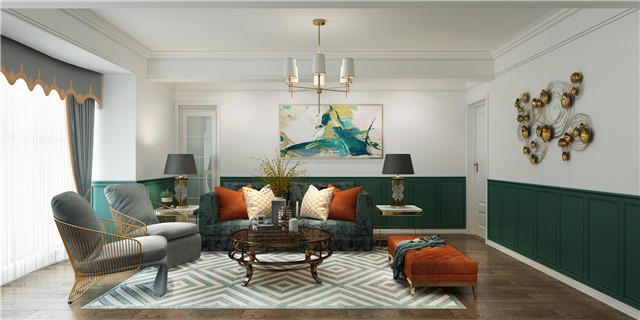 綠色的電視背景墻充滿個性,美式家居摩登中的復古最是迷人,彰顯奢華的高級感。