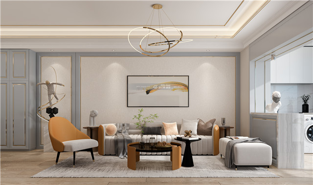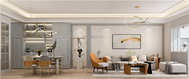 優(yōu)雅的藍(lán)白色調(diào),賦予空間更多的個性和溫柔的情感,奢華當(dāng)中不失細(xì)膩的家居體驗。橙色的融入既明媚又和藍(lán)色碰撞出優(yōu)雅、溫柔舒適的家居格調(diào)。歐式沙發(fā)和金屬細(xì)線條,融合藍(lán)色打造溫柔又華麗的優(yōu)雅家居氣氛。