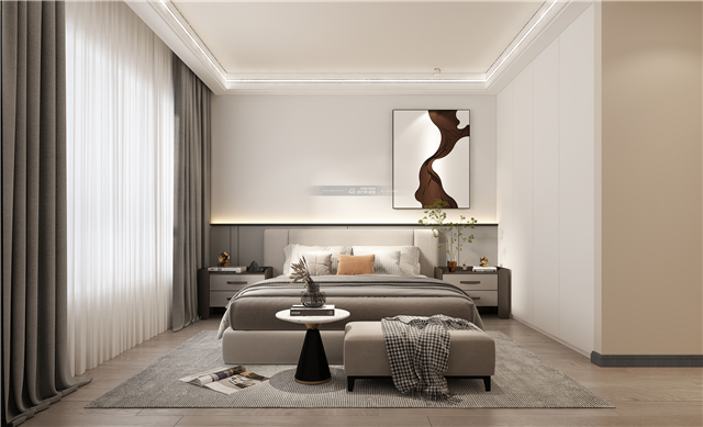 燈帶營造良好的溫馨氛圍感,簡約的墻面產(chǎn)生親切感,床頭不同材質(zhì)的區(qū)分,讓家居層次更加豐富而有韻味。