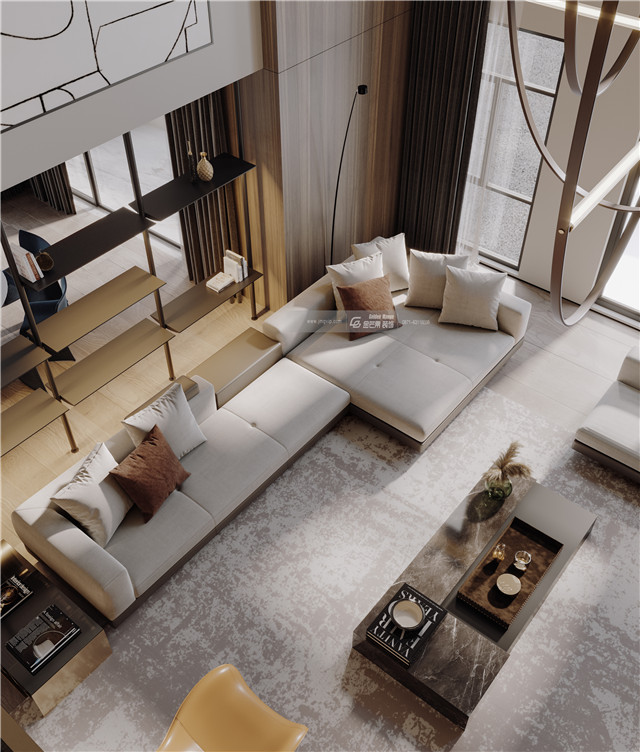 豪宅里最“霸氣”的客廳,雙層落地玻璃窗戶,收獲雙層建筑的視覺和景觀,既增加良好的采光,又讓房間變得高級而富有格調感。