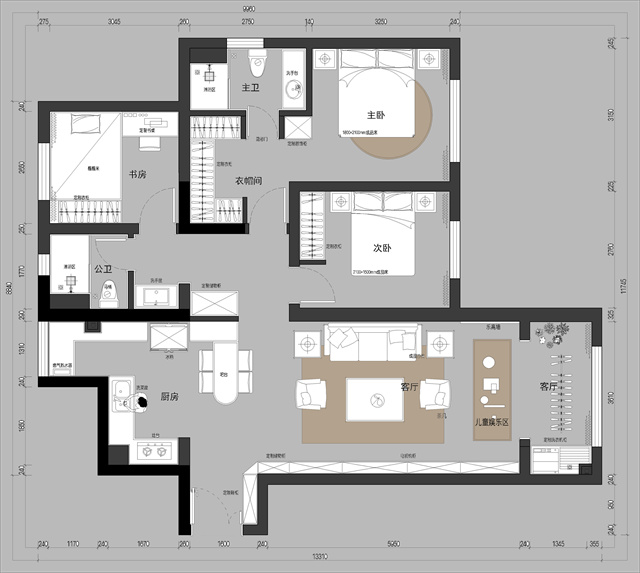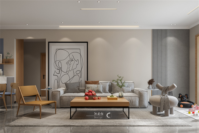 在整體風格走向上,加入穩重的灰色,不同深淺不同材質,既有碰撞區分又協調統一,空間感更好。