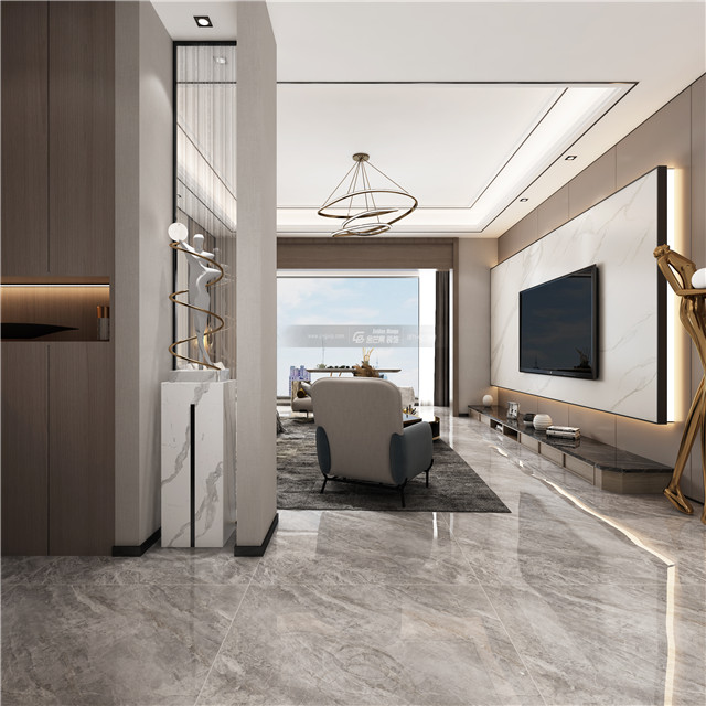 大理石電視背景墻,背后安裝燈帶,簡(jiǎn)約而時(shí)尚。