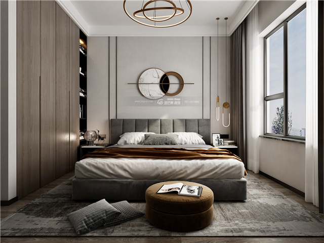 溫暖優(yōu)雅的顏色,營造溫馨舒適的臥室氛圍,床頭融入裝飾,增加時尚感。