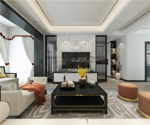 新中式風(fēng)格是結(jié)合中國傳統(tǒng)文化底蘊的基礎(chǔ)上融入現(xiàn)代風(fēng)格元素,實現(xiàn)中式和現(xiàn)代的碰撞之美。摒棄傳統(tǒng)中式的繁復(fù),加入現(xiàn)代的特點,融入一些中式家具、剛正的線條,古雅的顏色,加上中式對稱美等特點,展現(xiàn)高山流水、空谷幽蘭的中式美韻。