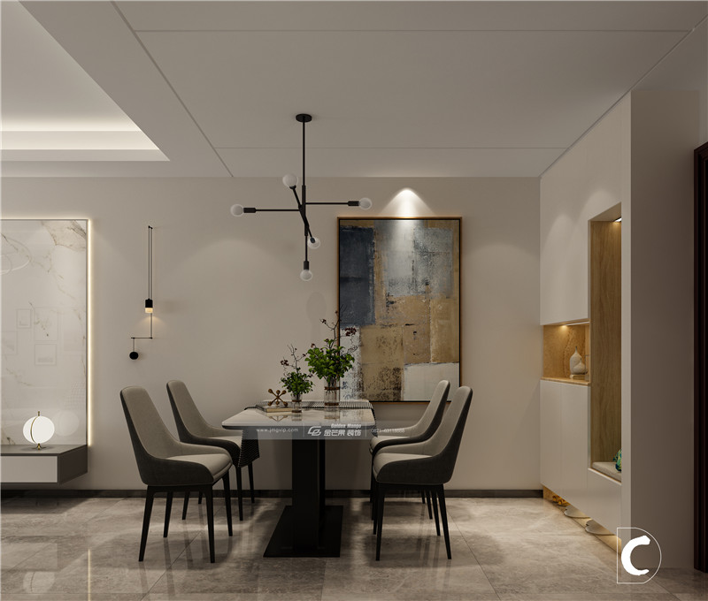 餐廳采用一些皮質的餐椅,質感簡單不俗。利用撞色與時尚簡單的掛畫,餐廳不只是一味的黑白,增強整體的舒適感。