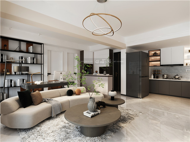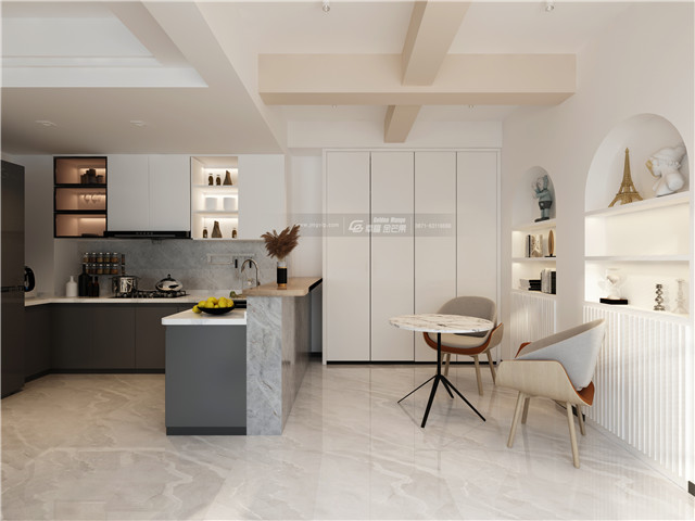 開放式廚房,讓家互動性更好,不管是燈光的選擇還是裝飾材質的選擇,都在展現個性的空間環境,讓烹飪變得更加有格調,彰顯家居個性。