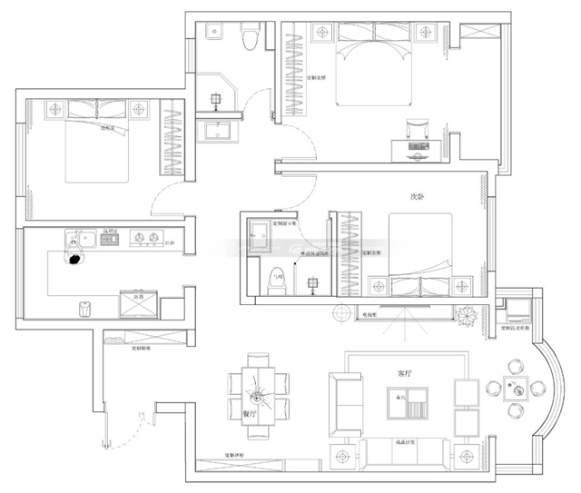 時(shí)光輕輕,風(fēng)也不燥,溫暖的橘色和木色,為空間注入更多的暖意。柔和的燈光、弧度招來陣陣睡意,安逸、輕柔,讓家無比舒適。