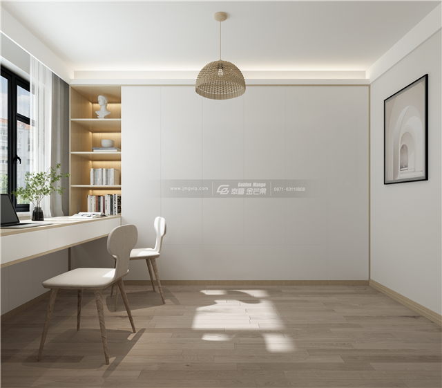 滿屋的木香氣混合著書香氣,書頁摩挲的質(zhì)感和木材的質(zhì)感相互融合,純凈的顏色,輕薄的紗簾,讓一切都變得簡(jiǎn)單,留更多的自己沉浸在書里。