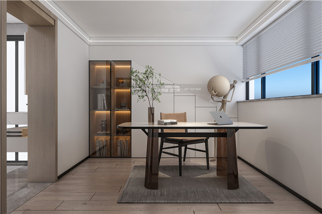 背景運用幾何形狀的造型增加空間層次感,灰玻點綴高級感油然而生,百葉窗投射下斑駁的光線,一切都變得文靜起來。
