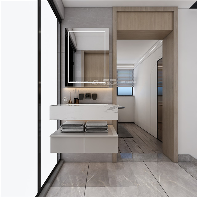 利落的線條讓空間變得灑脫,鏡子上的燈帶讓空間格調感立馬提升,現代感十足。