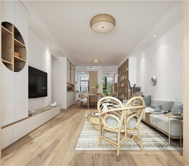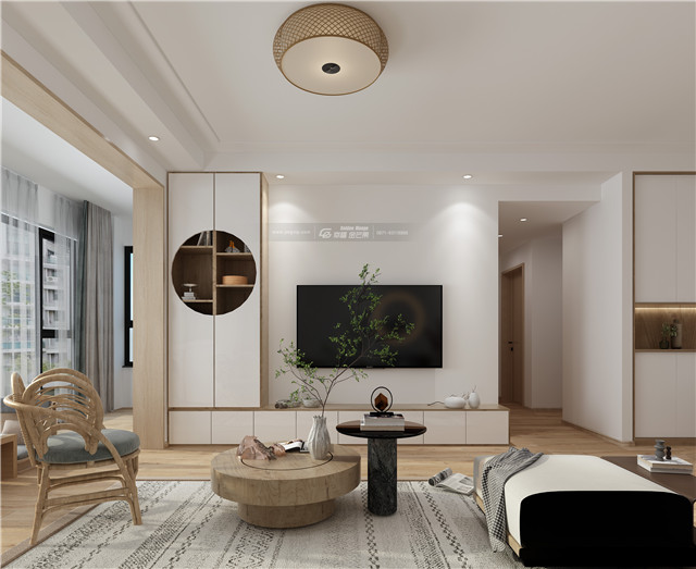 電視背景墻柜體做成鏤空的設(shè)計(jì),結(jié)合原木家具,讓空間有了一絲禪意。木質(zhì)的小幾仿佛一顆樹(shù)根,充滿了自然原始的味道,更具家居韻味。和風(fēng)鳥(niǎo)作伴,以草木為家,一切都變得清逸、灑脫起來(lái)。