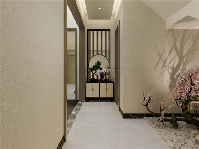 入口小景氣韻生動,玄關與偏廳透景相承,光影的隨機流動增添了自然的趣味、涵養。