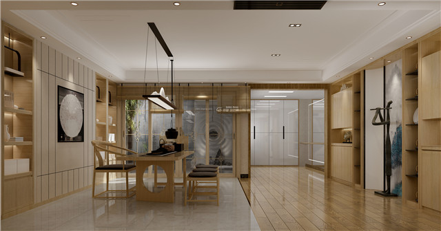 東方的木幾、瓷器、水墨畫和自然光線,在“虛與實”、“顯與隱”間相互作用,形成具有東方禪意的視覺張力。