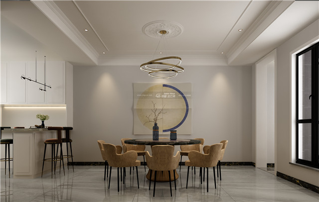 造型獨特的天花,別致的吊燈,軟裝配飾的精心搭配,極具質感的材質和面料,營造出空間獨有的底蘊和藝術情懷。