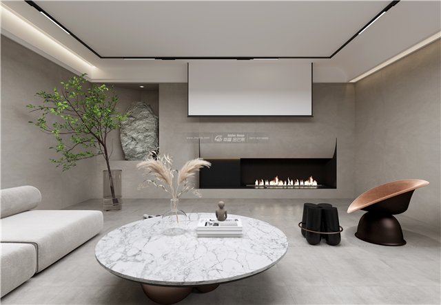安靜的氣質由內而外,讓人身心無限放松下來。異形燈飾為空間注入了幾絲活力。木飾面和電子火焰,從視覺上營造暖意融融的感覺。