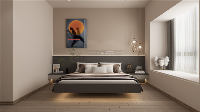 沒有做繁復的床頭背景,用簡單的筆觸刻畫出質感高級的空間。簡約而更加突出材質本身的高級,醞釀出優雅富有魅力的就寢空間,自在舒適,質感滿滿。