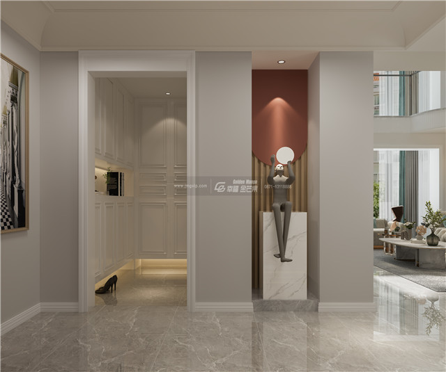 簡約的線條,彰顯利落大方的大宅氣質(zhì),對稱的設(shè)計,空間顯得更加有氣勢。