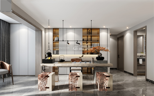 設(shè)置開放式品茶區(qū),挖掘生活情趣的更多可能性,周末邀約三兩知己,在這里品茗、談天地、論人生,飲茶賞景,投射出自然、從容的氛圍。