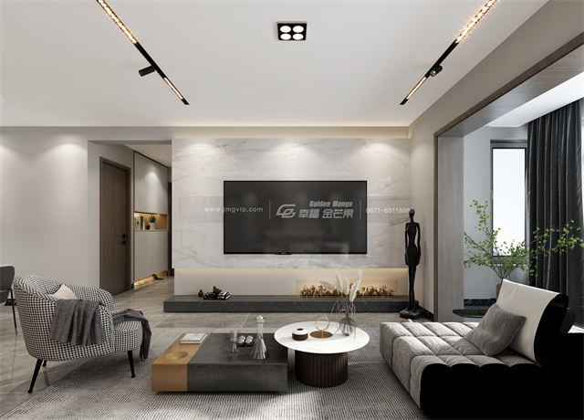 現(xiàn)代簡(jiǎn)約的客廳,以注重功能性,追求理性,簡(jiǎn)潔、明朗的色彩而備受喜愛。電視背景墻使用花紋大理石材為背景,簡(jiǎn)約大氣,增添的擺件不僅能營(yíng)造現(xiàn)代風(fēng)簡(jiǎn)約感,還能更好的體現(xiàn)文化氛圍。