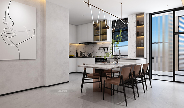 餐廳與廚房進行融合,利用開放格局之形,去強調居住者是空間中絕對的主角,為他們的生活注入更豐沛的情感。