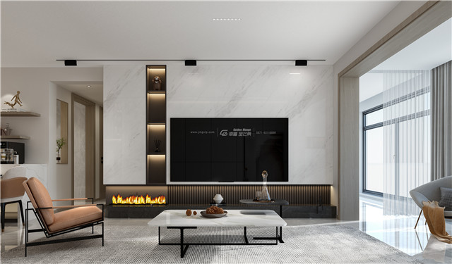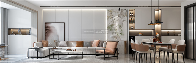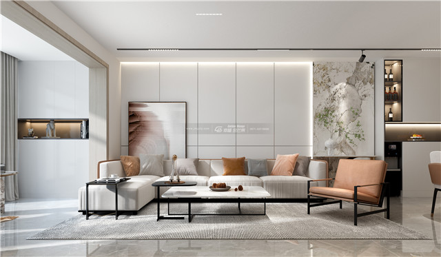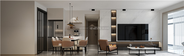 摒棄繁雜的電視柜,厚重的茶幾,生活化繁為簡。大理石電視背景墻,因?yàn)槟举|(zhì)柜體和暖光源的加入變得愈加有質(zhì)感。或陷入沙發(fā),或坐臥地毯,房屋本身散發(fā)的安逸感,足以在匆忙的歲月中,給予心靈最溫柔的撫慰。