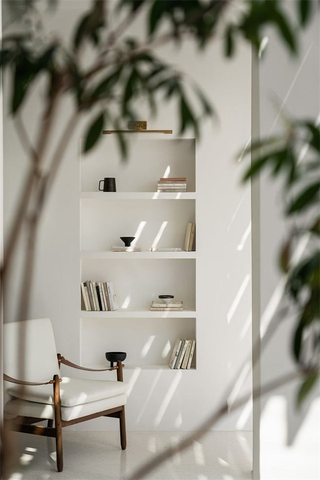白天應對生活的各種瑣事,臥室就獨留一片沒有壓力的純凈空間吧。純粹的白填滿整個空間,是放任簡單的思緒,亦是對內心雜念的清洗,什么都不想,毫無壓力的入睡。