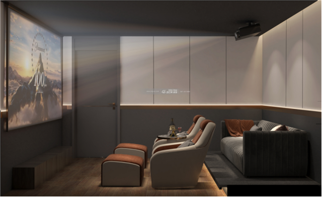 健身房和家庭影院的設計,為業(yè)主提供了休閑和鍛煉的空間。家庭影院中,暖光燈布局只為更佳視聽環(huán)境,空間的整體質感愈發(fā)突出優(yōu)雅。