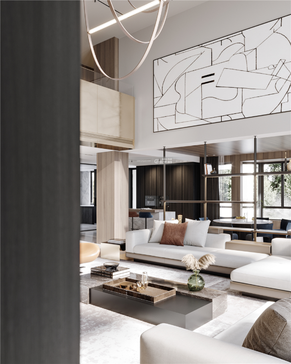 該項目是地處昆明滇池one 600m²的別墅,業主是一家對生活品質有很高要求。通過多次跟業主溝通探討,最終我們希望打造一個意式極簡的家居氛圍和空間格調。
