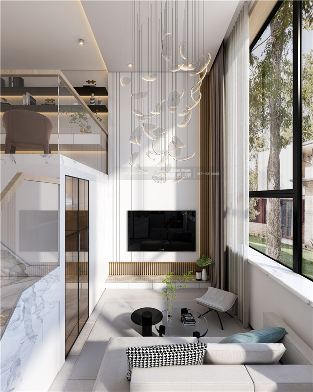 寬敞的大落地窗帶來(lái)通透的視覺(jué)感受,空間看起來(lái)更加開(kāi)闊。個(gè)性的吊燈帶動(dòng)起空間靈動(dòng)的氛圍。