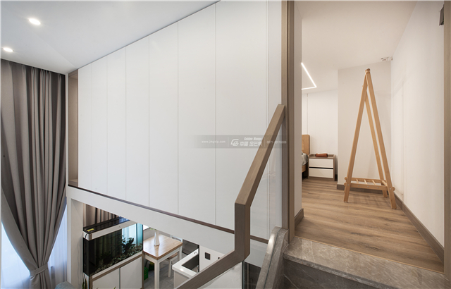 通完臥室的樓梯一梯兩用,一面通向書(shū)房,一面通向臥室。
