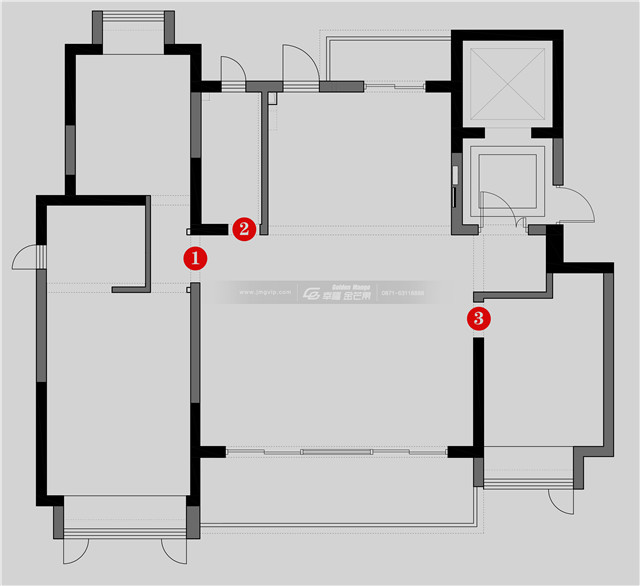 ④、1、2、3處做隱形門設(shè)計,客廳整體感、視覺效果更佳。