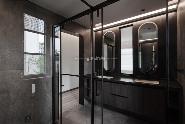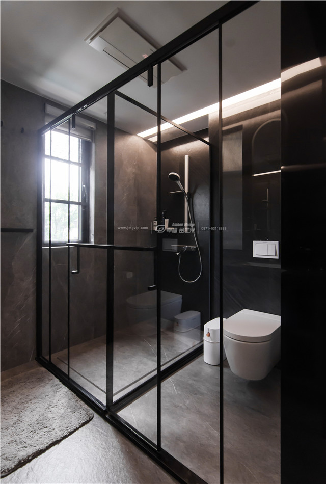玻璃移門做半開放式衛(wèi)生間的設(shè)計,空間私密性更好。通體L形大門套,整體性在細(xì)節(jié)處理上非常妙。